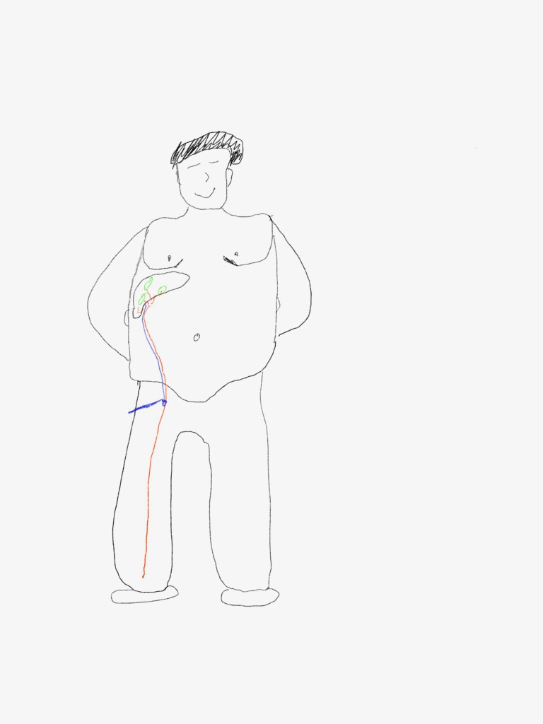 Menschen wird ja oft nachgesagt, dass sie besonders von Innen heraus strahlen, um so besondere Eigenschaften zu beschreiben. In meinem Fall wird sich das tatsächlich in die Realität umsetzen, denn nach Chemotherapie und Bestrahlung habe ich das Glück, dass eine innovative und vielversprechende Therapie für meine Lebermetastasen auf mich wartet. Es klingt so fortschrittlich und abgefahren, dass ich mir wirklich denke: ..“what a time to be alive..“. Es geht um die „Selektive Interne Radio-Therapie“, kurz SIRT genannt. Eine Behandlung, der ich mich nun unterziehen werde, da meine aktuelle Chemotherapie leider nicht von Erfolg gekrönt war. Doch worum geht es? Im Gegensatz zur Chemotherapie, die systematisch auf den ganzen Körper wirkt, arbeitet diese Therapie mit der direkten Konfrontation des Feindes. Über einen Katheder, der an der Leiste gesetzt wird, werden kleine Kügelchen über die Leberschlagader in das Tumorgewebe injiziert. In diesen Kügelchen befindet sich ein radioaktives Element, dass dann dort wirkt und so im besten Fall das Geweben zum Absterben bewegt. Diese Kügelchen mit dem Material werden extra für mich in Kanada hergestellt und taggenau geliefert und verwendet, denn wie wir alle noch aus dem Chemieunterricht wissen, hat jedes radioaktives Element eine Halbwertszeit. Dieser Eingriff wird bei meiner besonderen Situation dreimal wiederholt, denn die Ärzte unterteilen meine Leber in drei Sektionen, die alle vorher mit Kontrastmittel getestet werden müssen. Das ganze Prozedere dauert im Normalfall keine halbe Stunde und erfolgt mit örtlicher Betäubung. Eine Testung mit Kontrastmittel habe ich schon hinter mir und ich kann sagen, das schlimmste daran ist der sechsstündige Druckverband an der Leiste danach, der zum Teil Dinge abklemmt(…) und der Fakt, dass man bis zum nächsten morgen nicht aufstehen darf, damit sich die Einstichstelle wieder schließt. Als ich zum ersten Mal von dieser Methode erfuhr, war ich Feuer und Flamme, da ich es zum Einen richtig cool fand, was heutzutage alles möglich ist und zum Anderen, ich immer noch darauf spekuliere, dass irgendetwas schief geht und ich dann im Sinne von Spider-Man oder Captain America Superheldenkräfte erlange. Zum Glück ergab die Voruntersuchung, dass meine anatomische Lage der Leber dazu geeignet ist, dieses radioaktive Material zu injizieren, denn im schlimmsten Fall könnte das Material auch in andere Organe wandern und dort wirken, wo es nicht soll. Im Großen und Ganzen heißt das für mich, dass ich erstmal wieder einige Wochen stationär in Behandlung sein werde. Ich bin aber dankbar und zuversichtlich einen weiteren Etappensieg auf meine Tour zu erlangen und deshalb habe ich auch mein teures IPad- Equipment und meine zeichnerischen Fähigkeiten in die Waagschale geworfen und euch eine Skizzen erstellt.